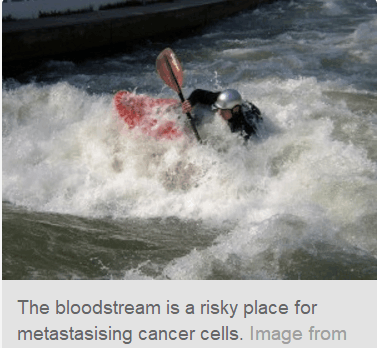 The bloodstream is a risky place for metastasising cancer cells. Image from <a href=”https://commons.wikimedia.org/wiki/File:Playboating3.JPG” target=”_blank”>Wikimedia Commons</a>